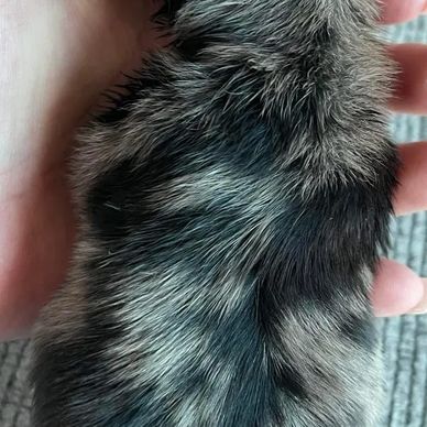 Merle is a dominant gene that creates mottled patches of color. Merle can affect all coat colors. The Merle coloring creates a highlight lowlight effect. Often times the Merle gene will also create light or blue eye(s). The blue eye can fade so it’s a bit unpredictable. Traditional merles are often referred to as “Blue Merles.”